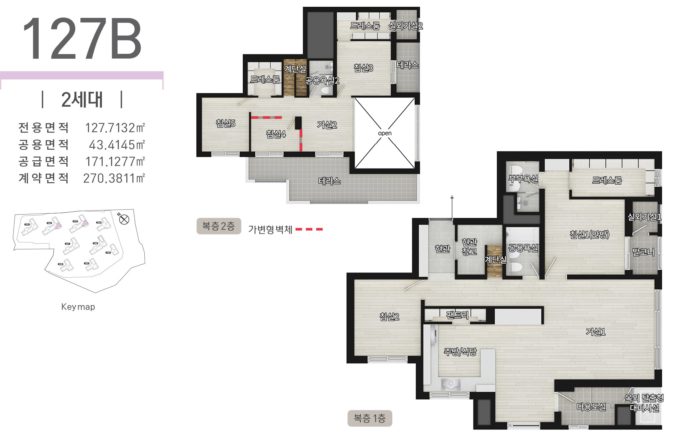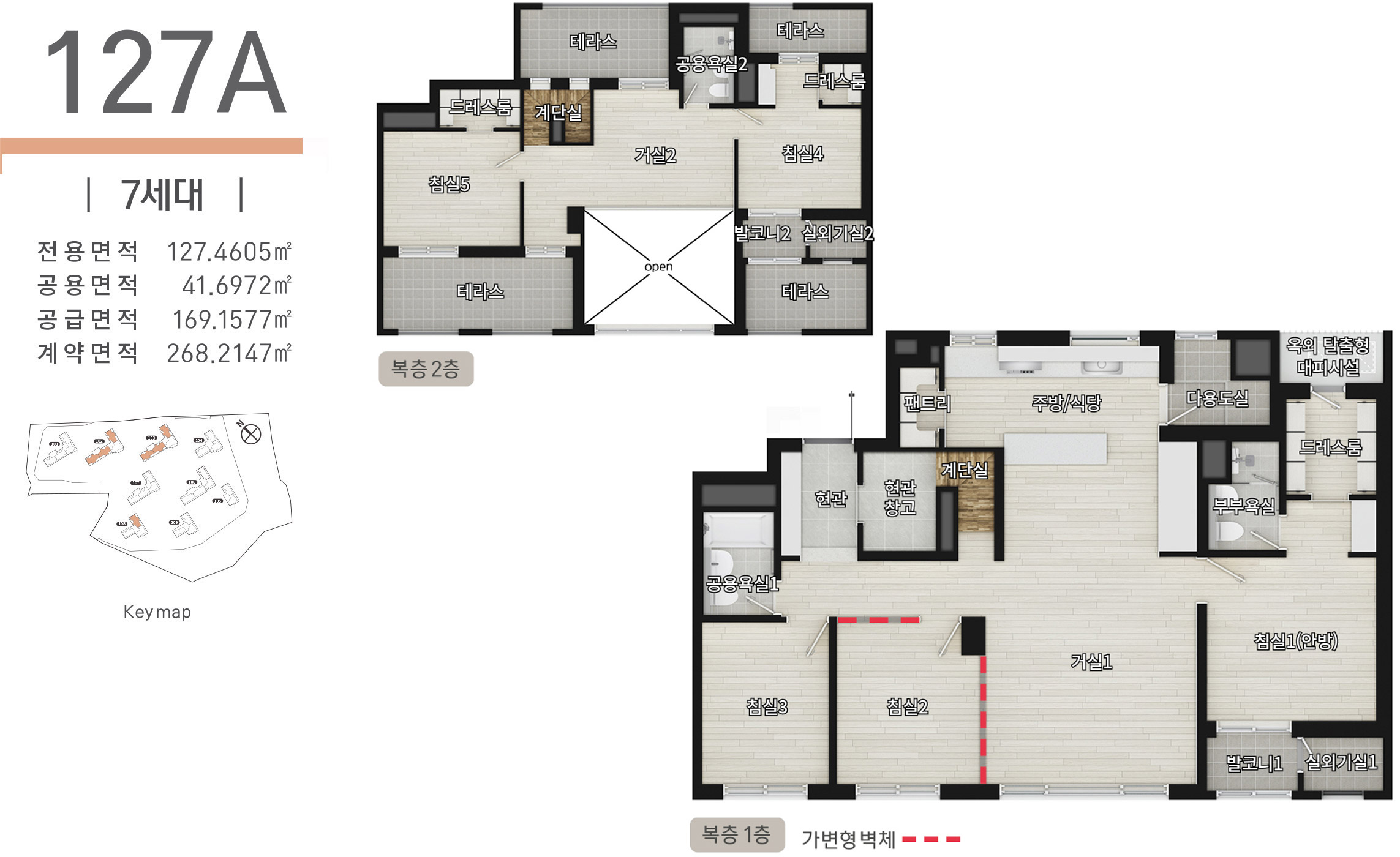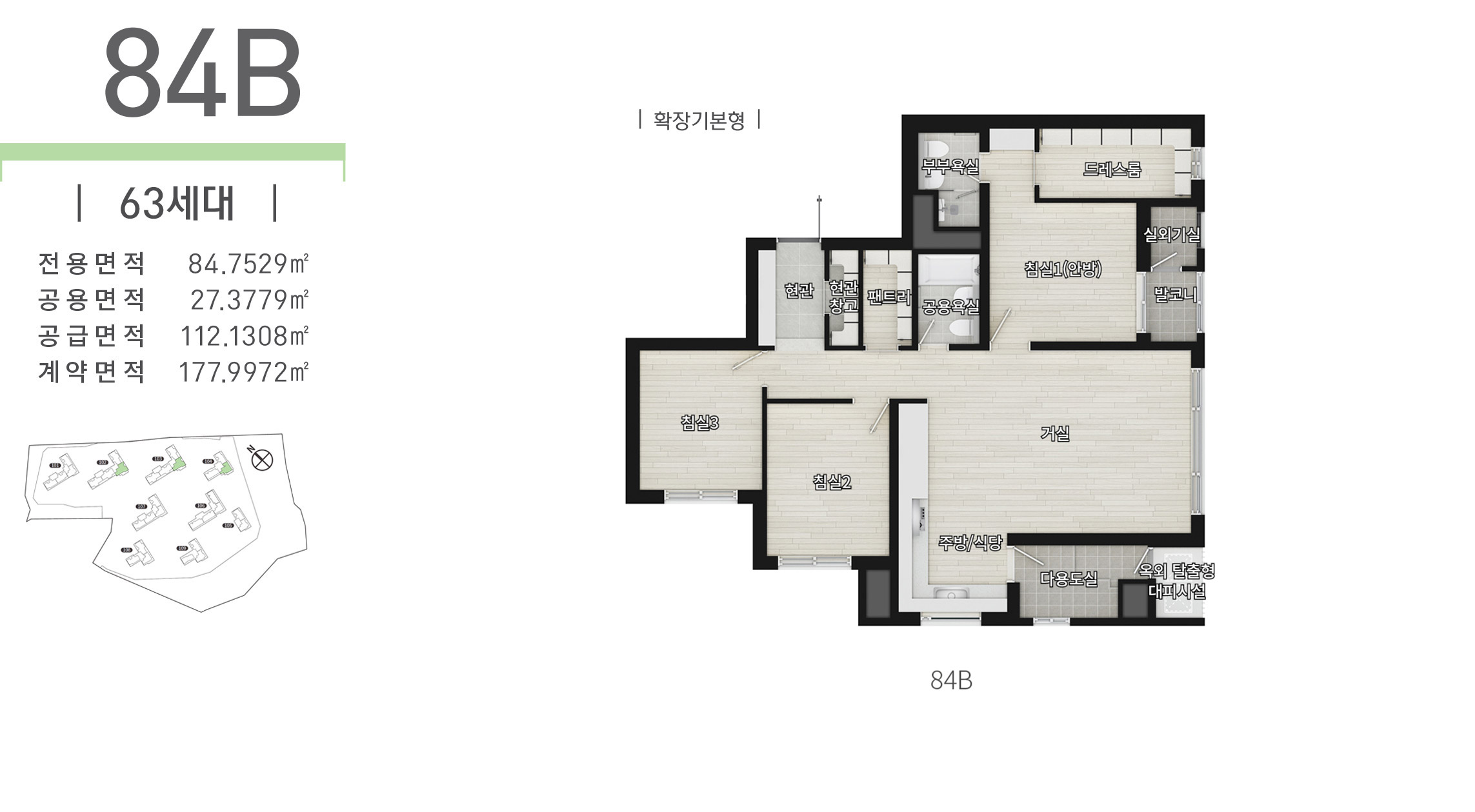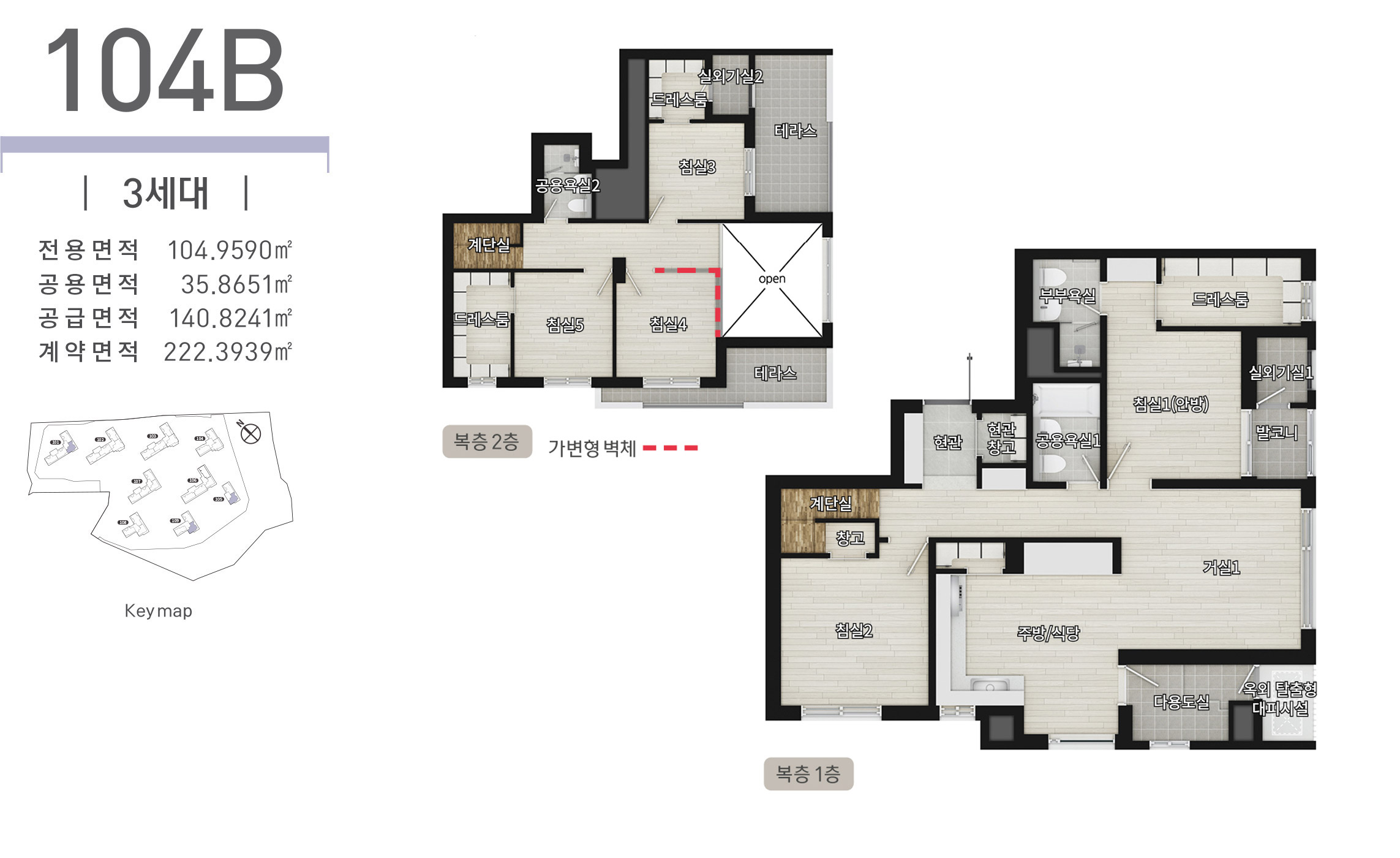 ※ 본 제작물에 표기된 실별 면적은 건축허가 변경 등으로 실 시공 시 변경될 수 있습니다.