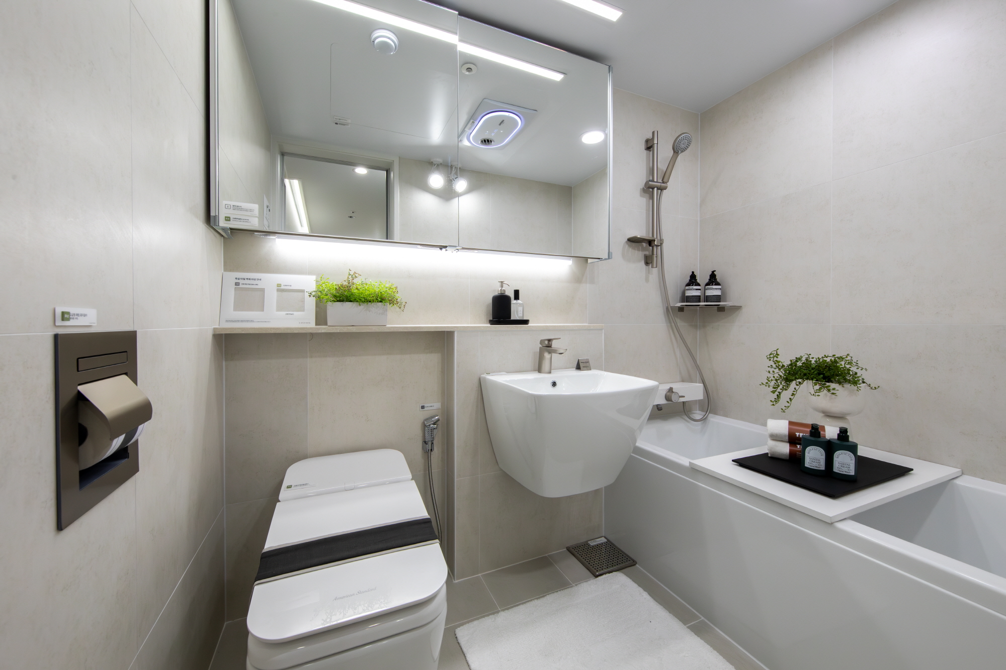 ※ 견본주택 및 인테리어 사진은 플러스옵션 적용기준으로 제작되어 기본 마감 및 구조는 견본주택에서 확인 바랍니다.